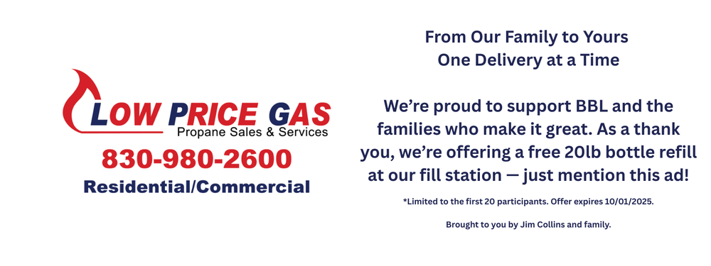 We’re proud to support BBL and the families who make it great. As a thank you, we’re offering a FREE 20lb bottle refill at our fill station—just mention this ad!